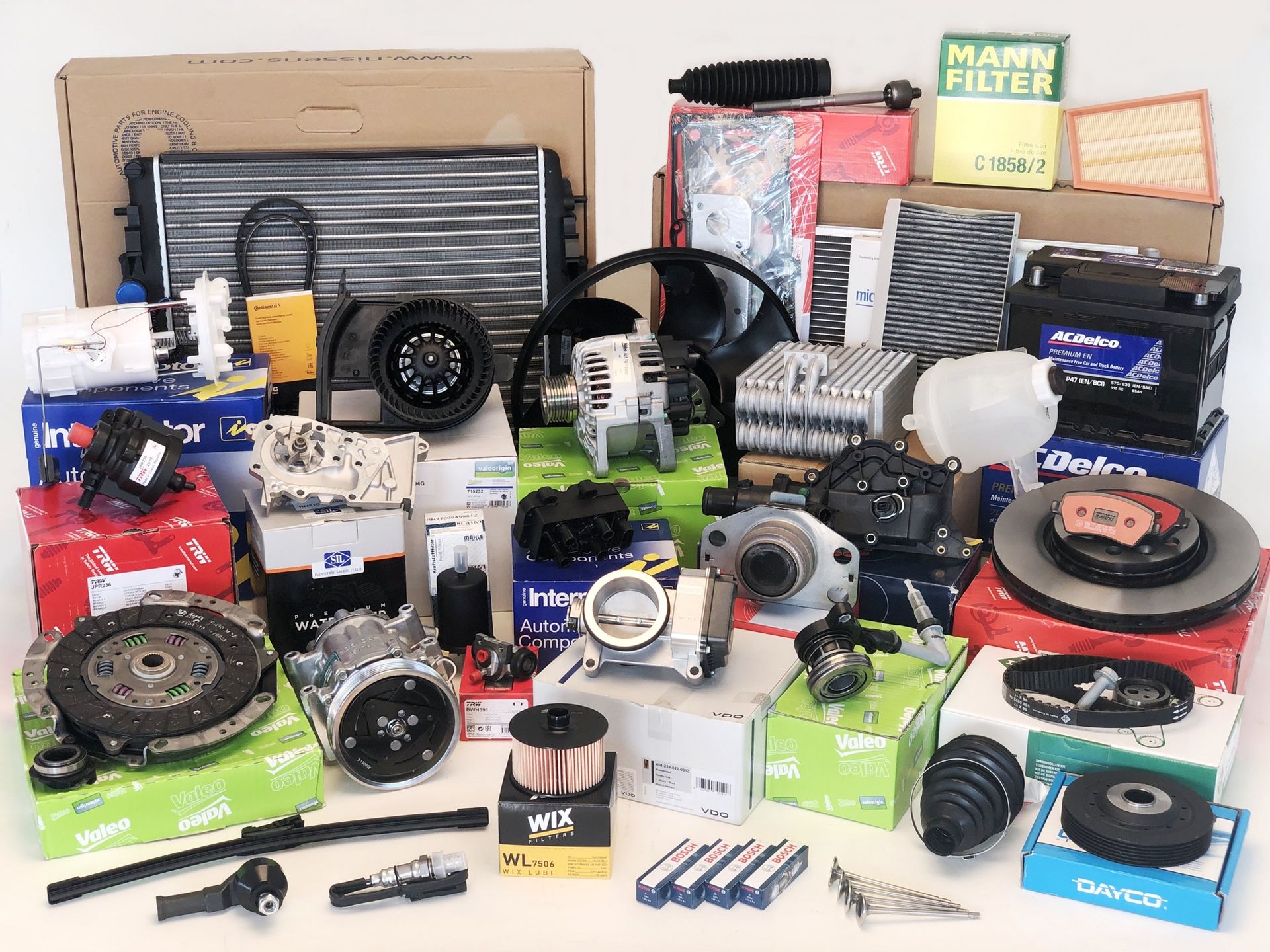 エンジンならびに駆動系のパーツや電装パーツから、サスペンションおよびブレーキ廻り、A/Cおよび内外装のボディパーツに電装パーツ、消耗品の各種フィルター、ワイパーブレード、バッテリーなど、純正部品のみならず、世界中から厳選したブランドの優良パーツを多数取り揃えて皆様のニーズにお応えしております。